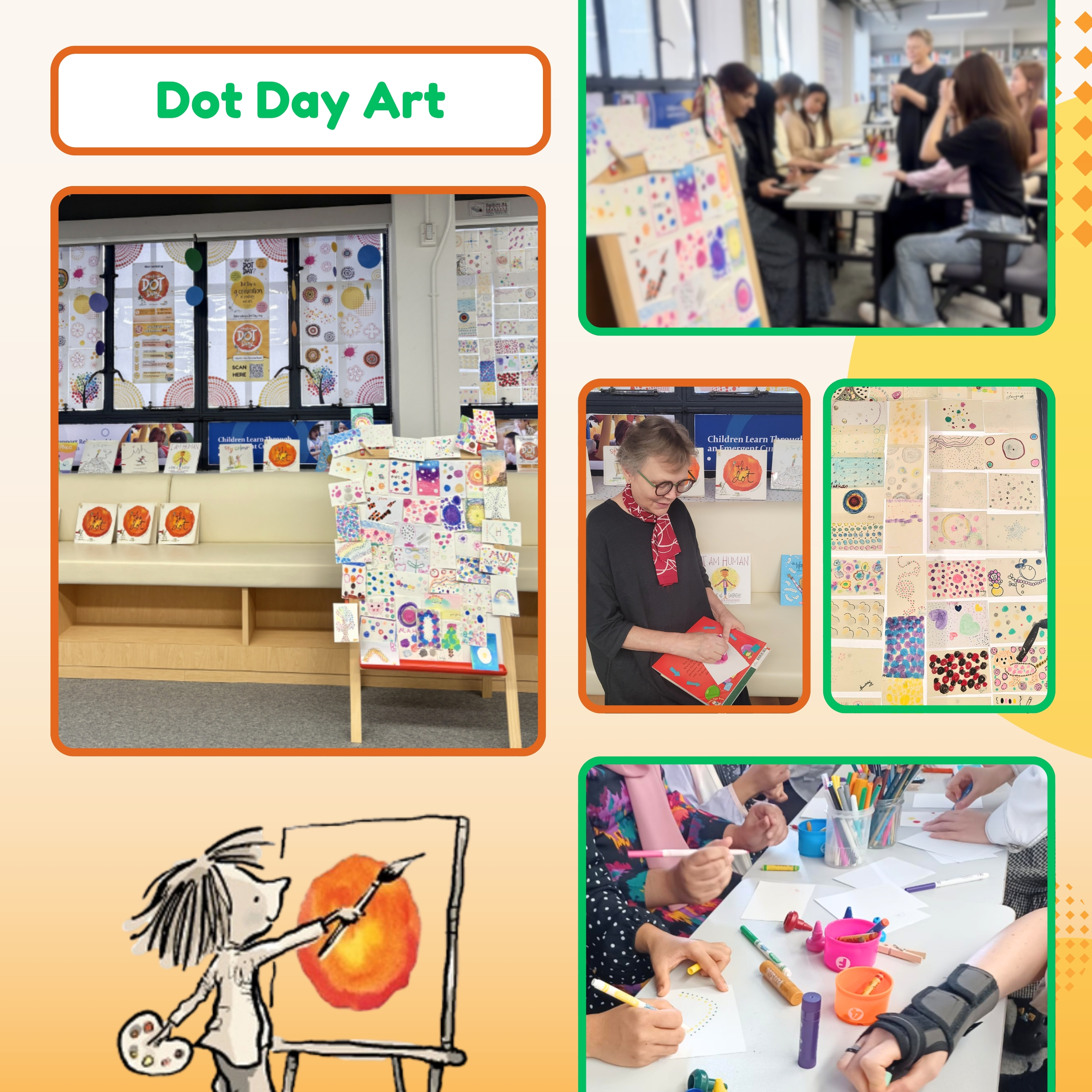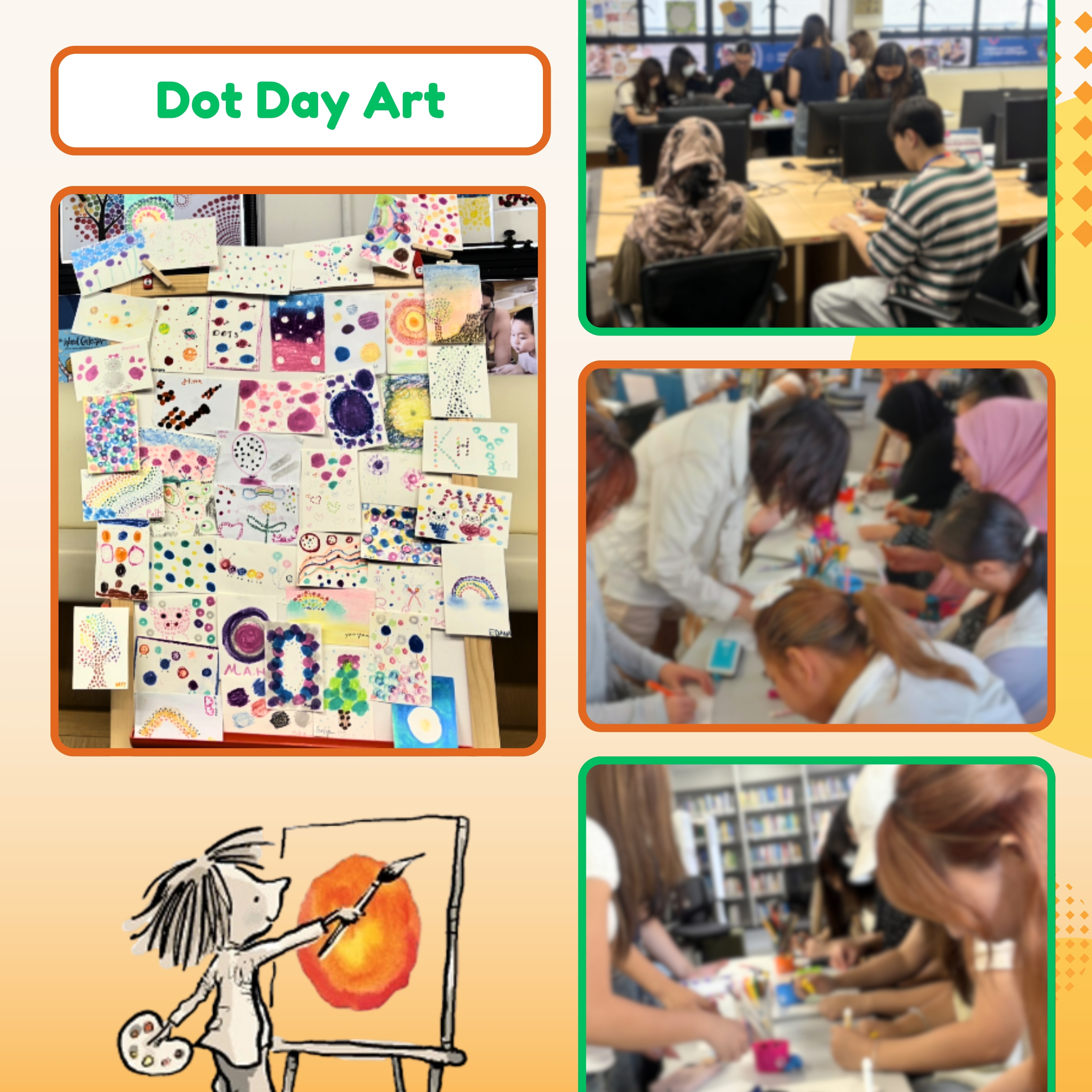 ✨That's a wrap on International Dot Day 2025! Our students listened to the inspiring story of "The Dot," then created their own amazing dot art. All their unique pieces came together to form one beautiful collaborative display. So proud of our artists!✨