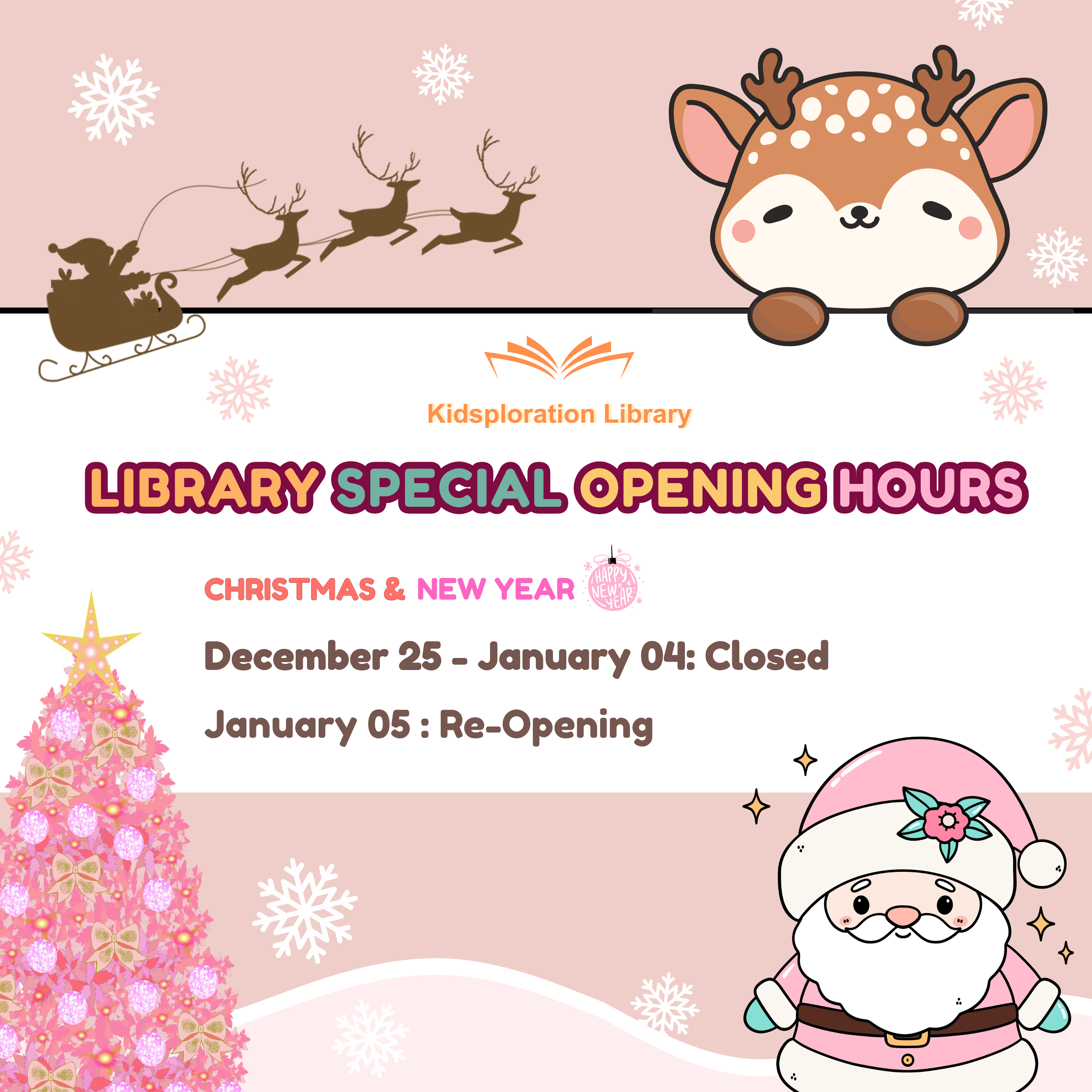 Please note the special library opening hours during Christmas & New Year: