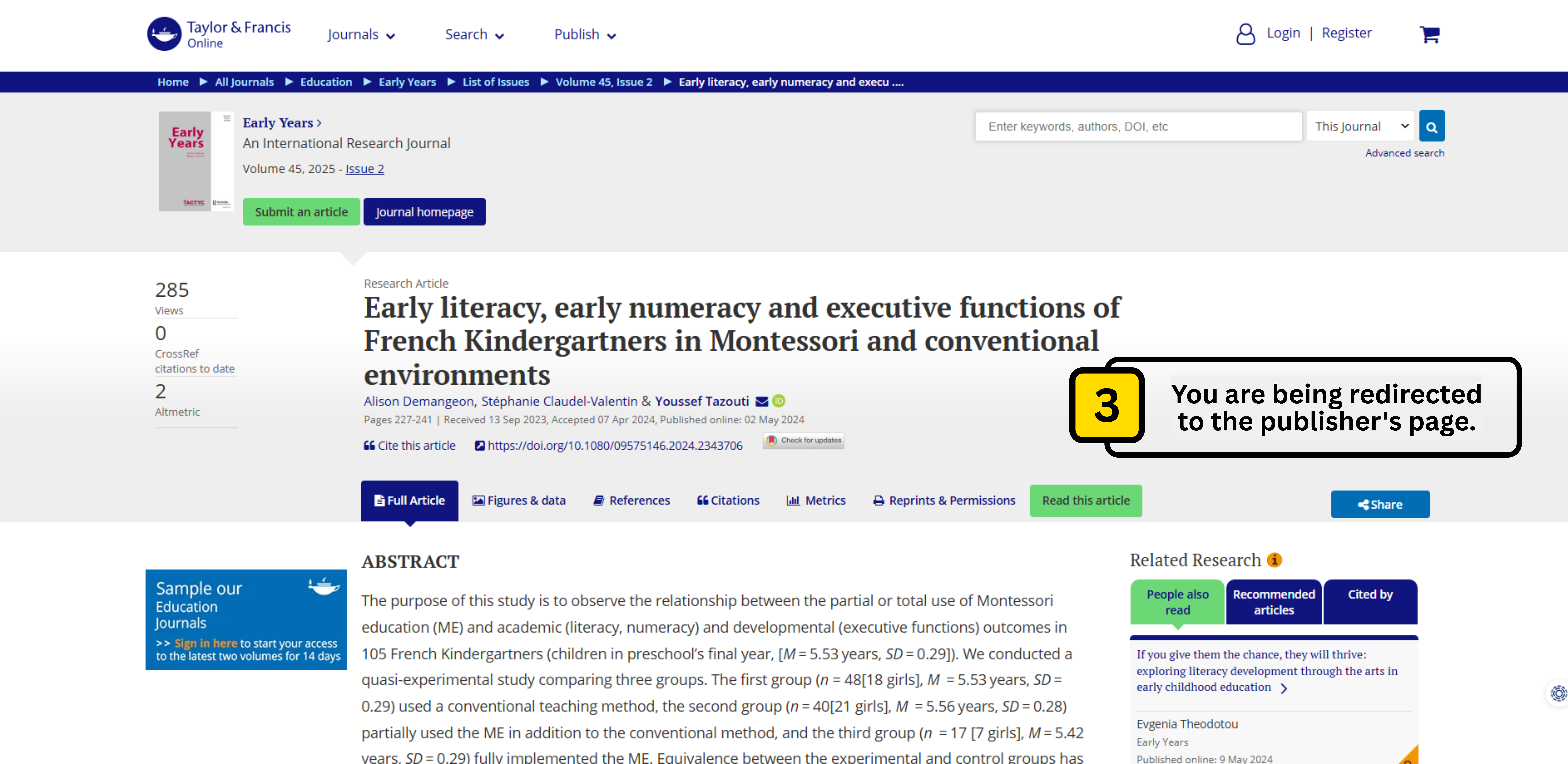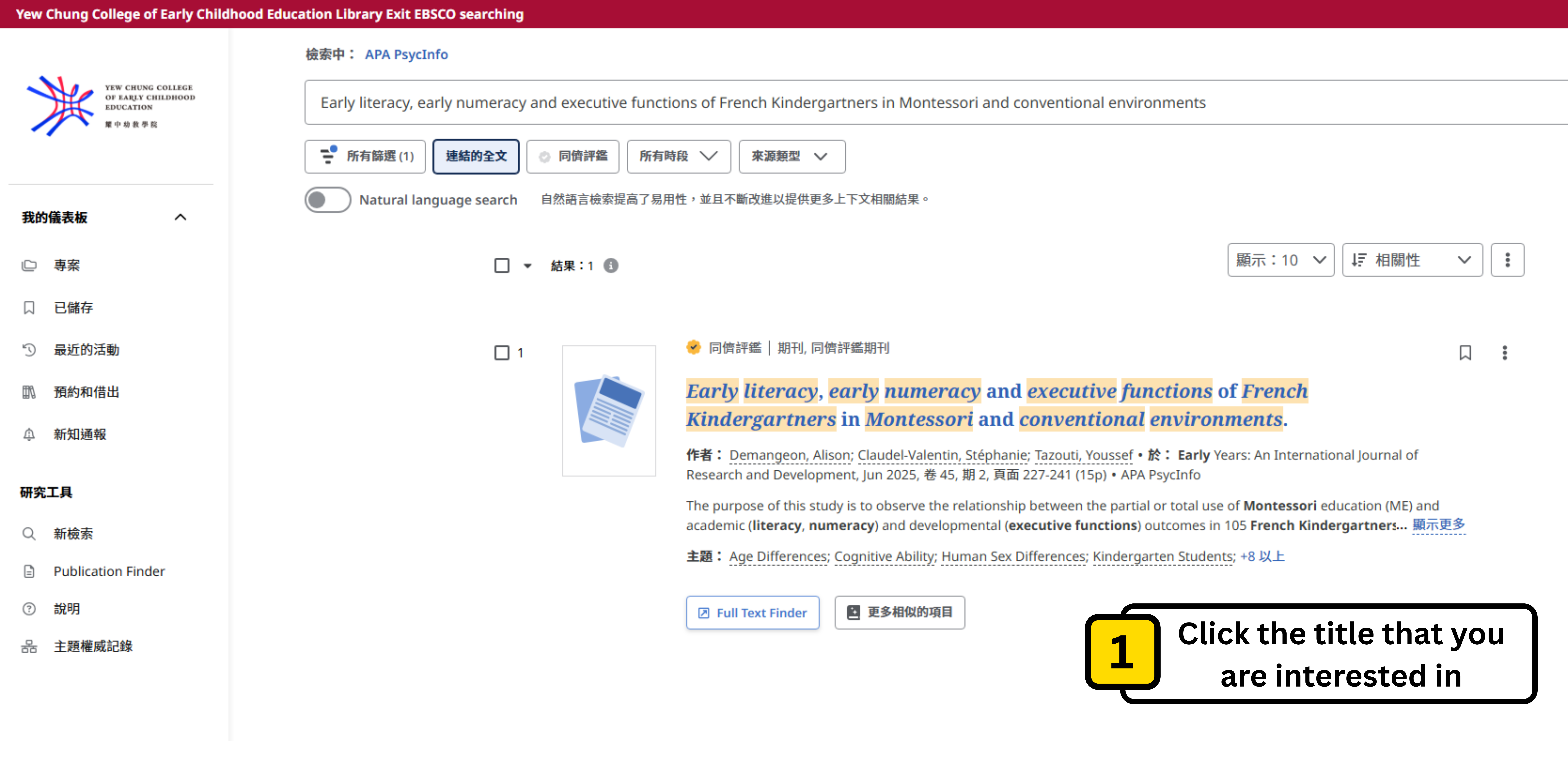 However, the Kidsploration Library subscribes to numerous electronic journals and educational databases. If an article indexed in APA PsycINFO is available through one of our subscriptions, you can access the full text directly.