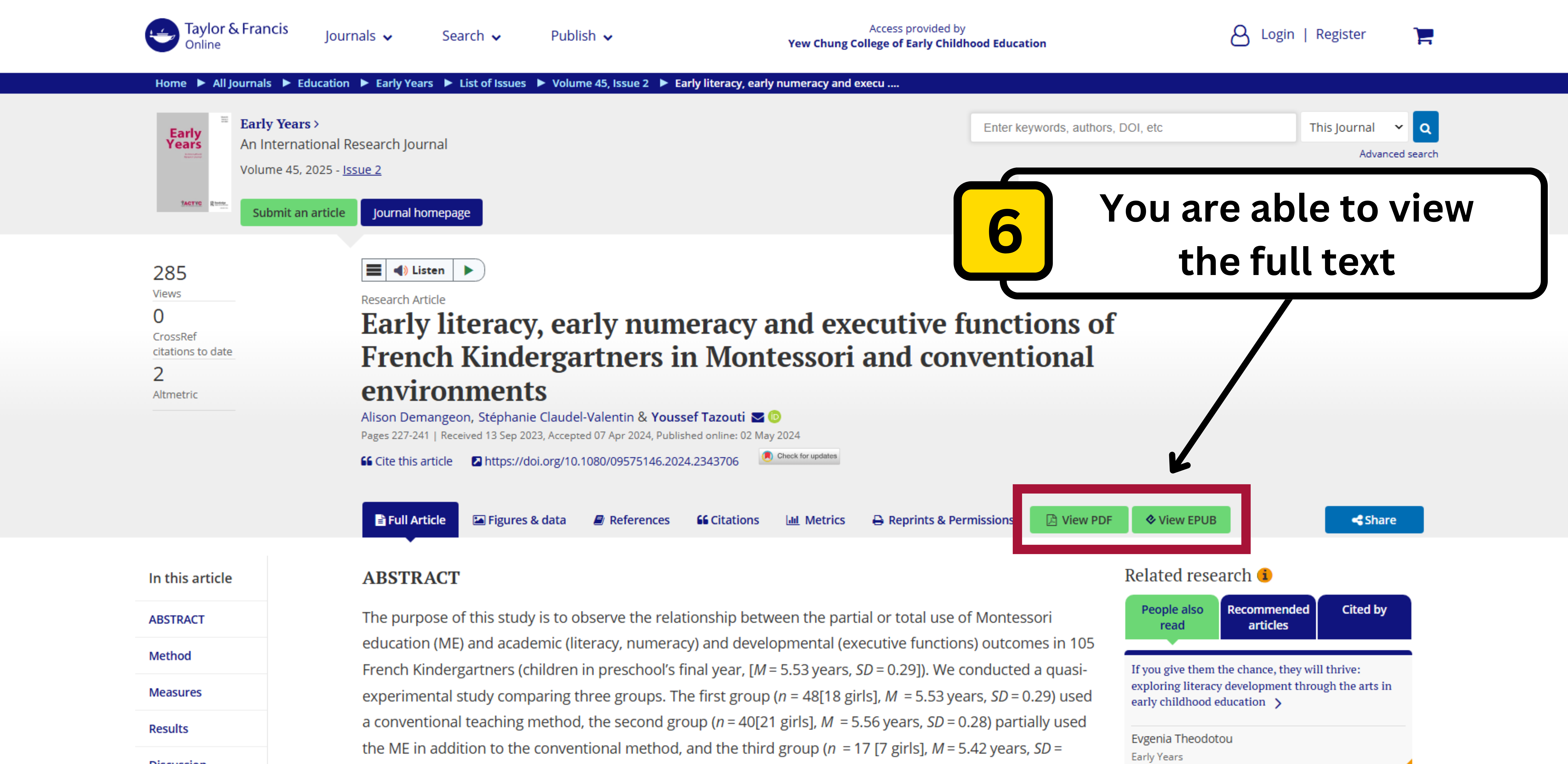 - If the article is available under an open access agreement or through a library subscription, you will be able to view the full text.